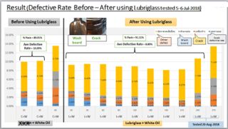 In recent years, the lubricant has been tested via manual swabbing by the operator at different glass container manufacturers with very similar results. Figure 1 lists results in terms of efficiency and defects.