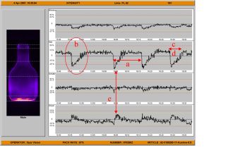 Figure 1 provides an example that shows the (a) frequency, (b) impact, (c) how long it takes before the process stabilised again, (d) how many bottles are affected or should be rejected and (e) the effect for glass distribution in the bottle.